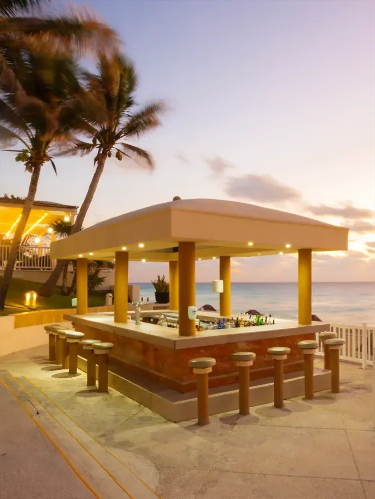 Here you will find a magical place that offers a vibrant and cheerful atmosphere, where our guests can immerse themselves in the beauty of the surroundings. With its colorful atmosphere and a thousand smiles, the bar invites visitors to relax and enjoy themselves while contemplating the breathtaking view of the nearby beach. It is the ideal place to unwind, have fun and get carried away by the energy of Cancun's culture. At the Tiki Bar, guests can enjoy refreshing drinks while soaking up the tropical ambiance and the music that mixes with the ocean waves.